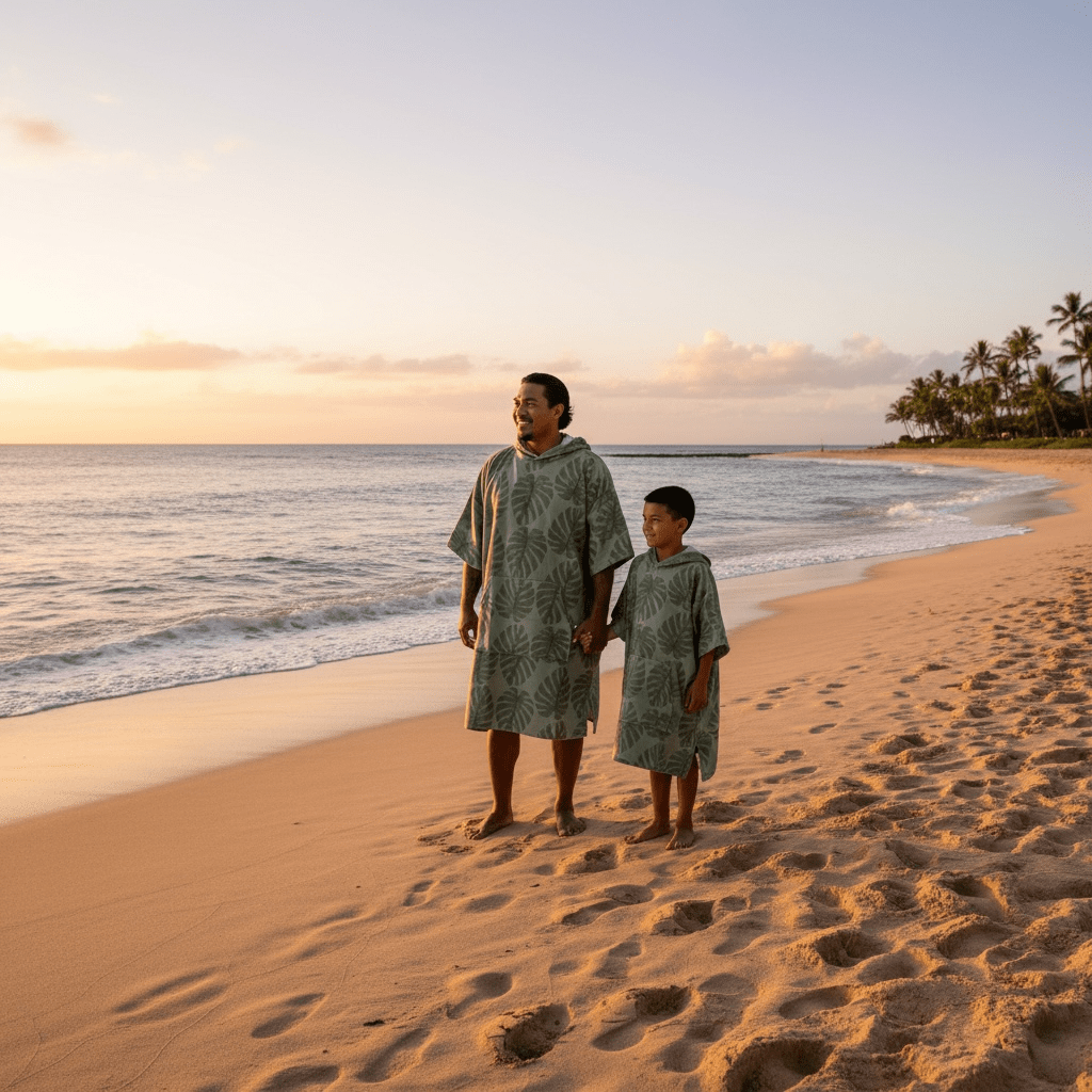 Adult Green Monstera Hooded Towel - Sweet Sweet Honey Hawaii